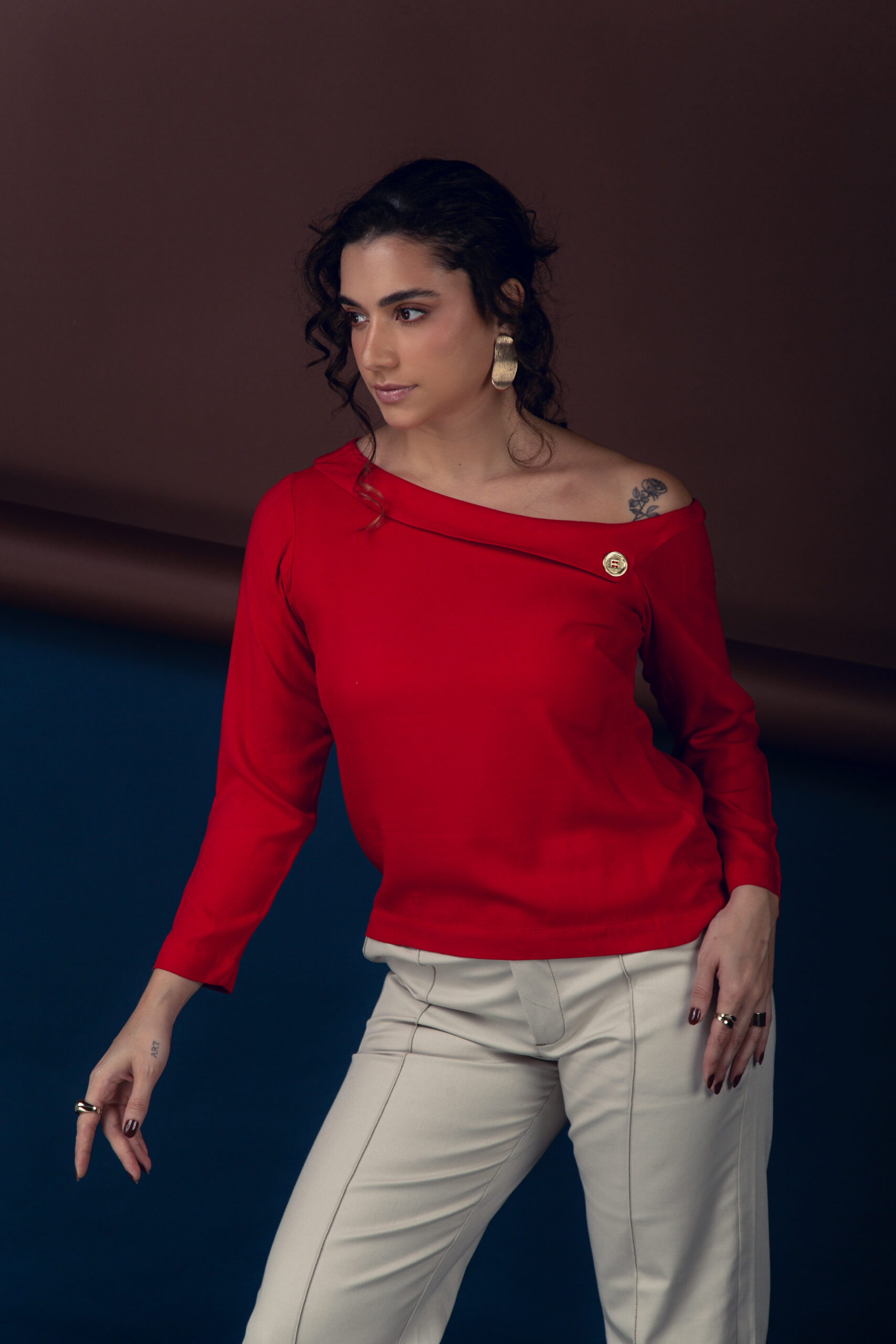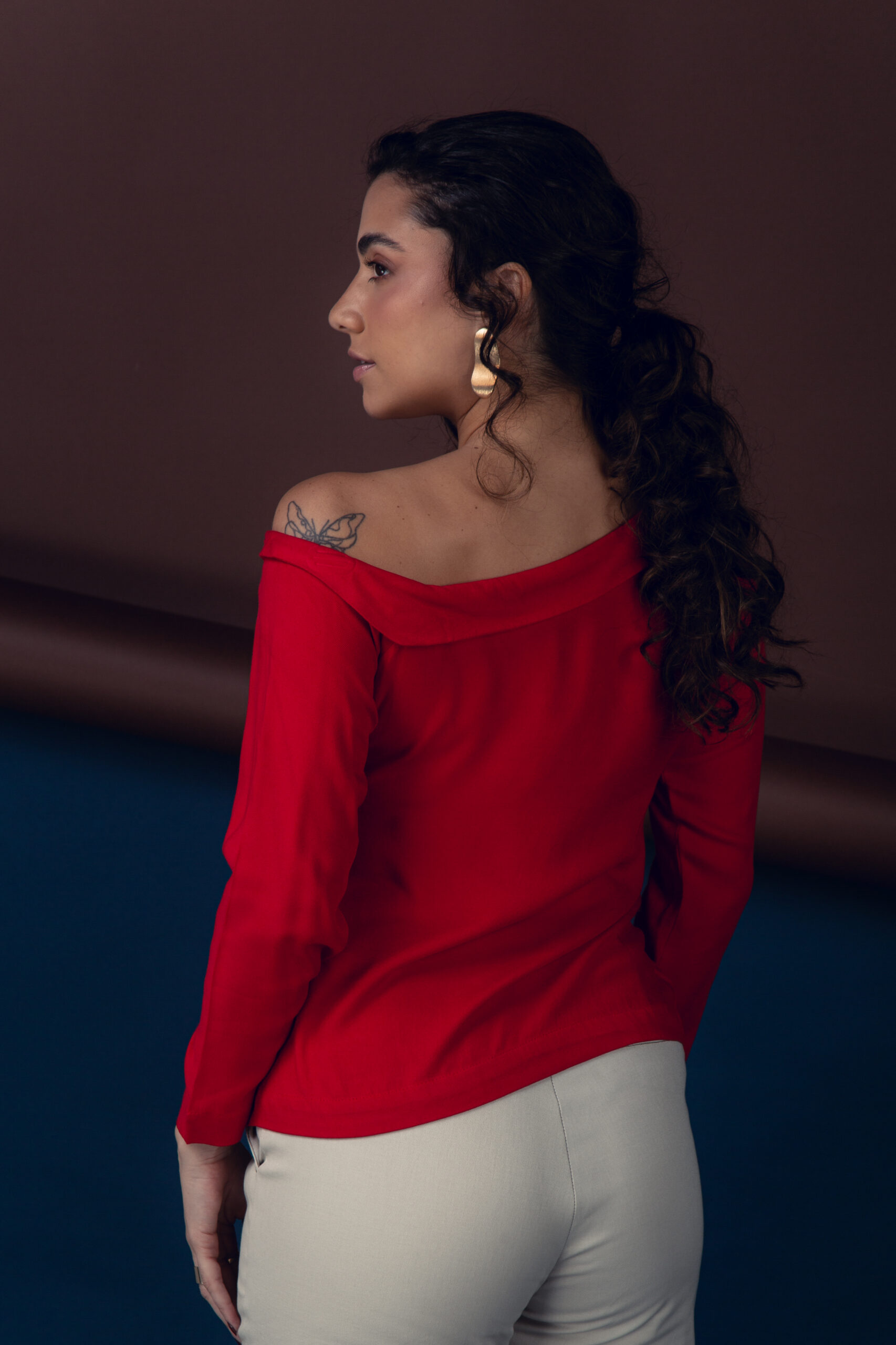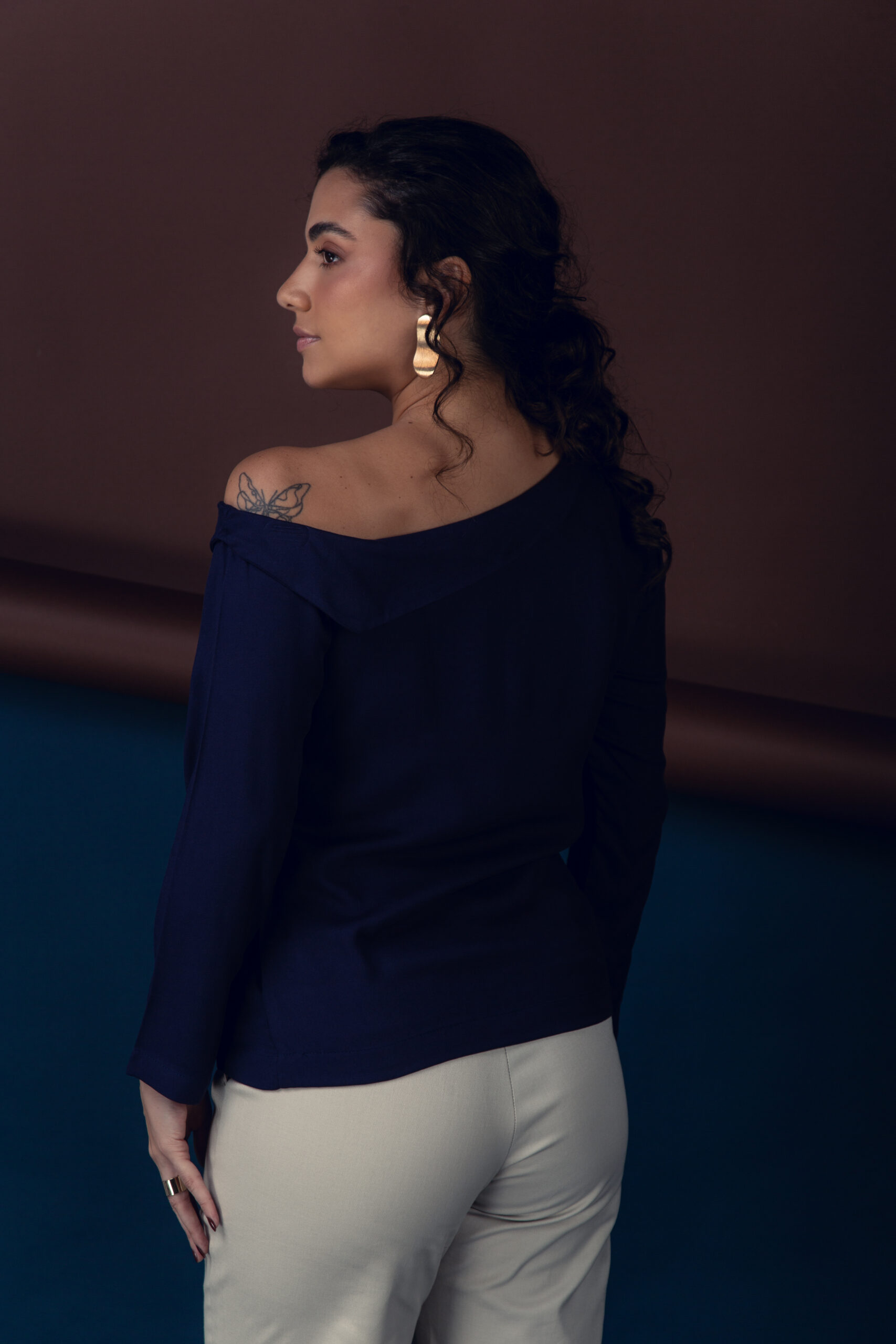 blusa básica com ombro caido