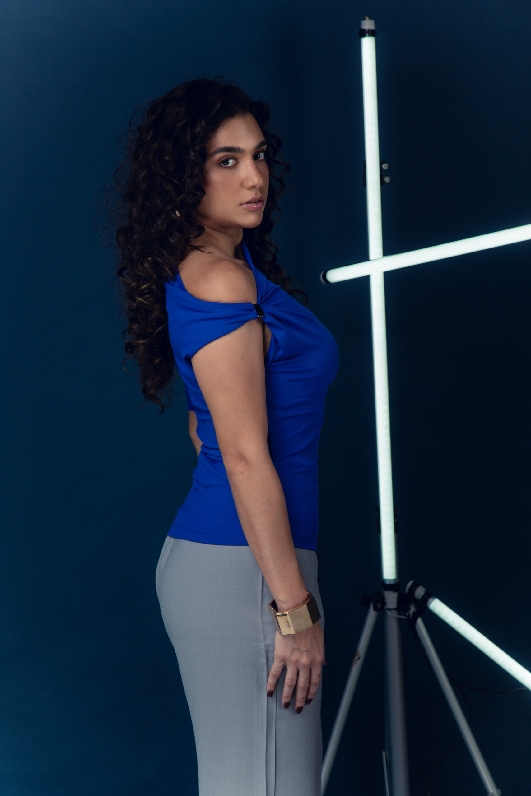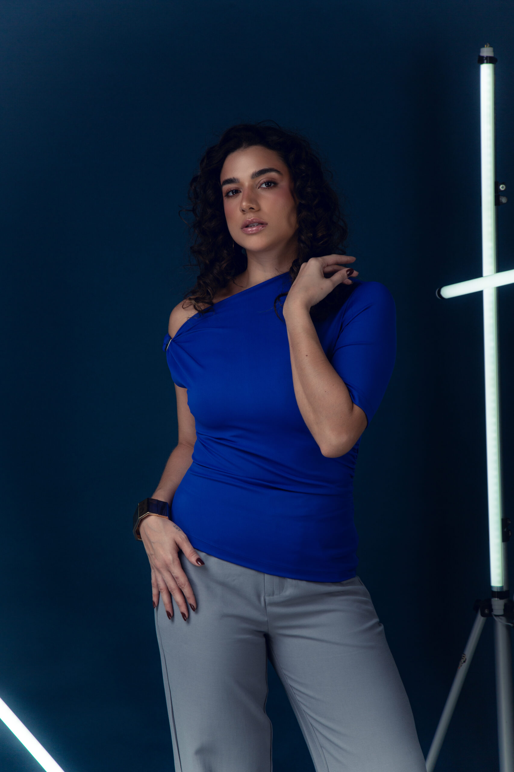 Blusa confeccionada em 84% Poliamida e 16% Elastano.