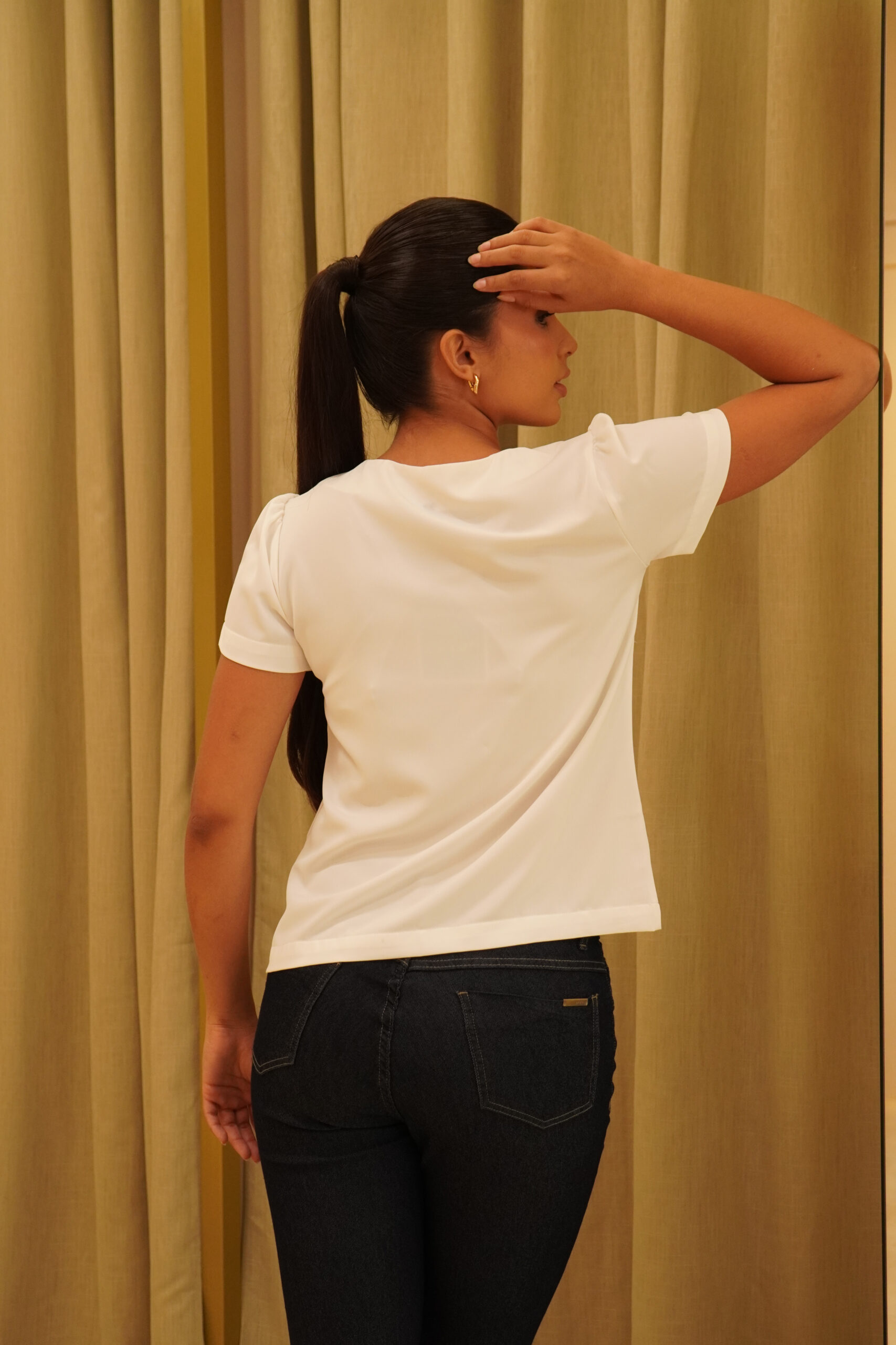 – Decote assimetrico