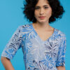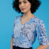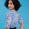 Estampa em folhagem, que em seu desenvolvimento possui varições de tons azul com branco.