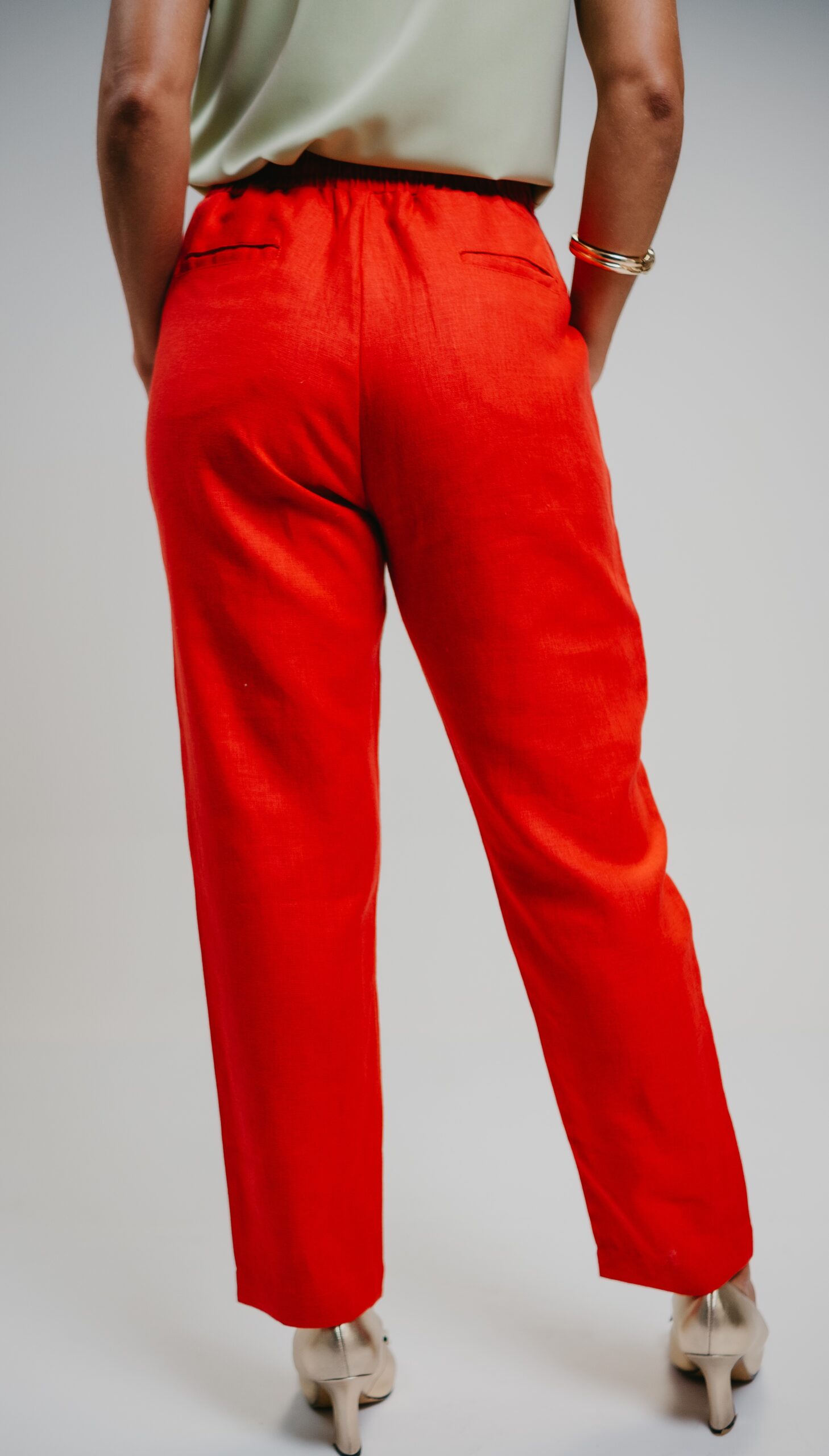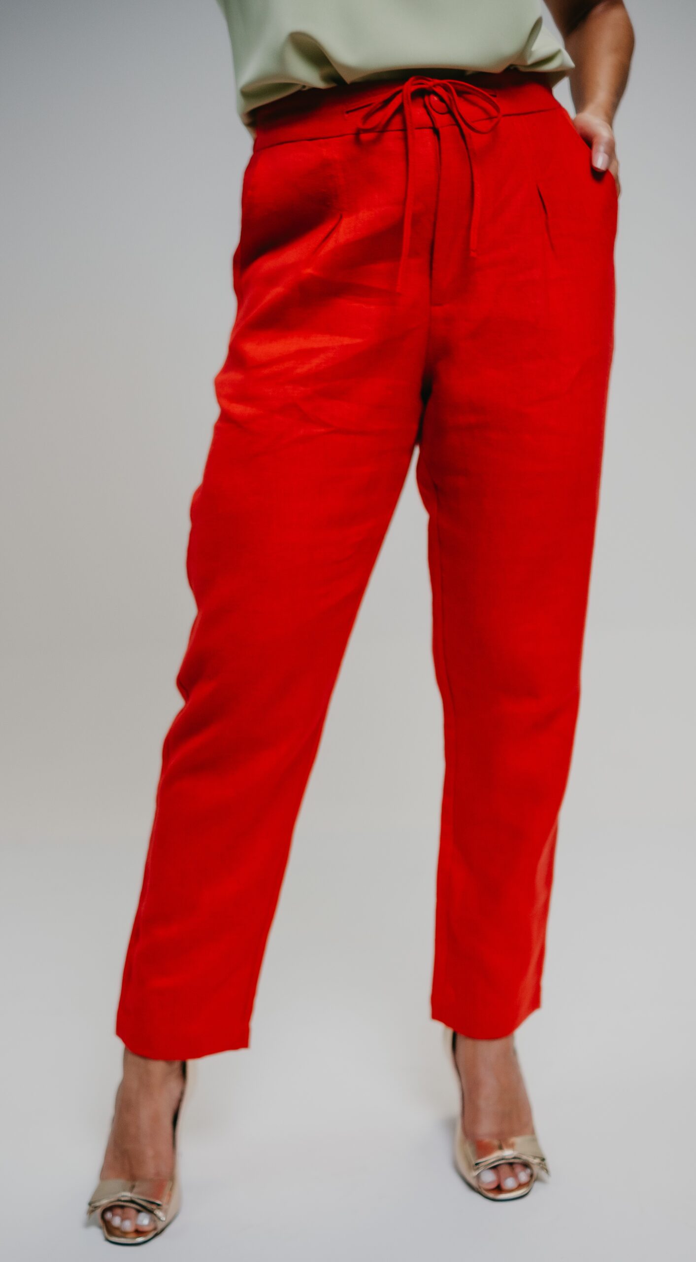 Possui modelagem carrot, mais solta no quadril e desce afunilando nas pernas.