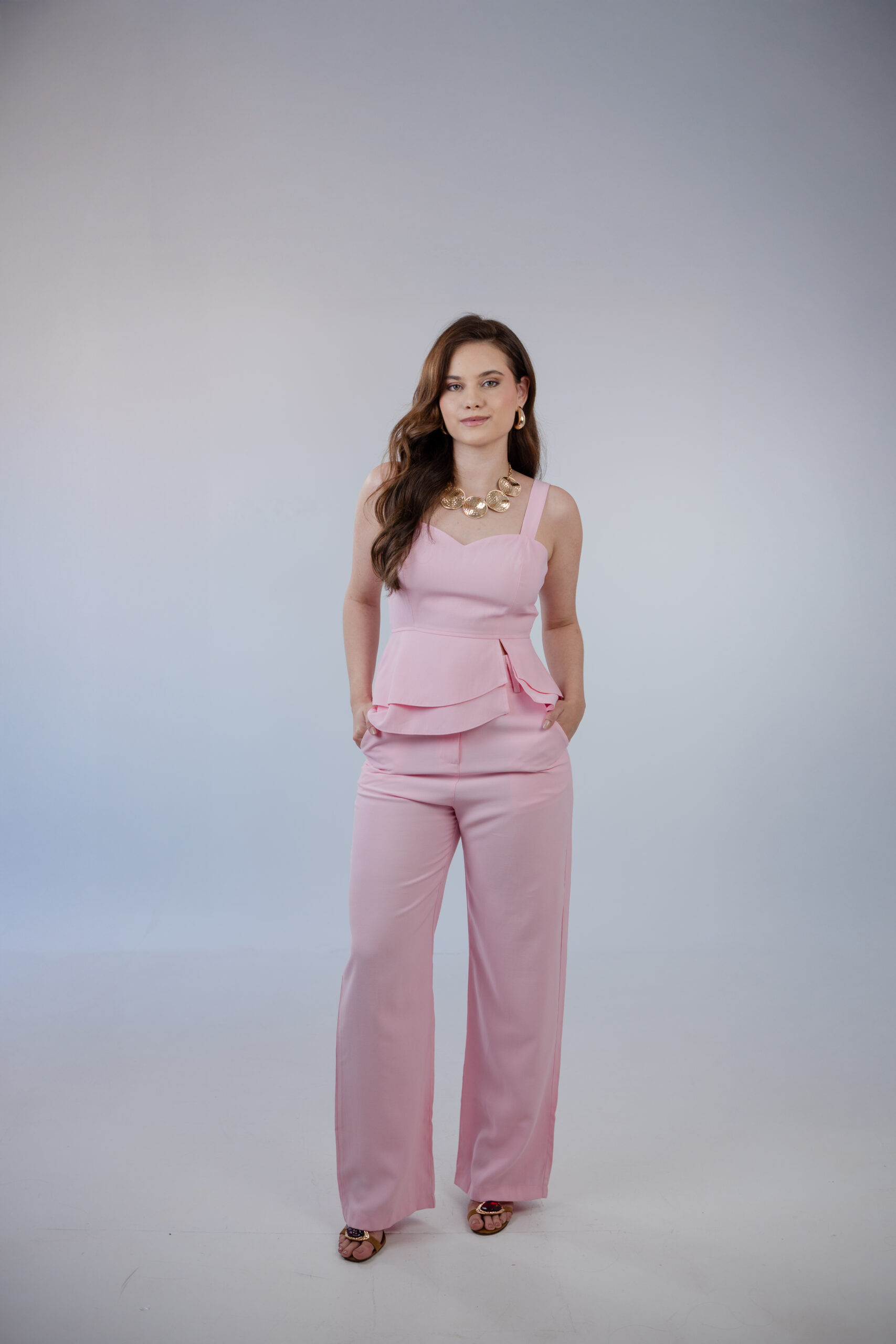 É uma peça moderna, que transmite feminilidade e sofisticação, perfeita para compor looks refinados e elegantes.