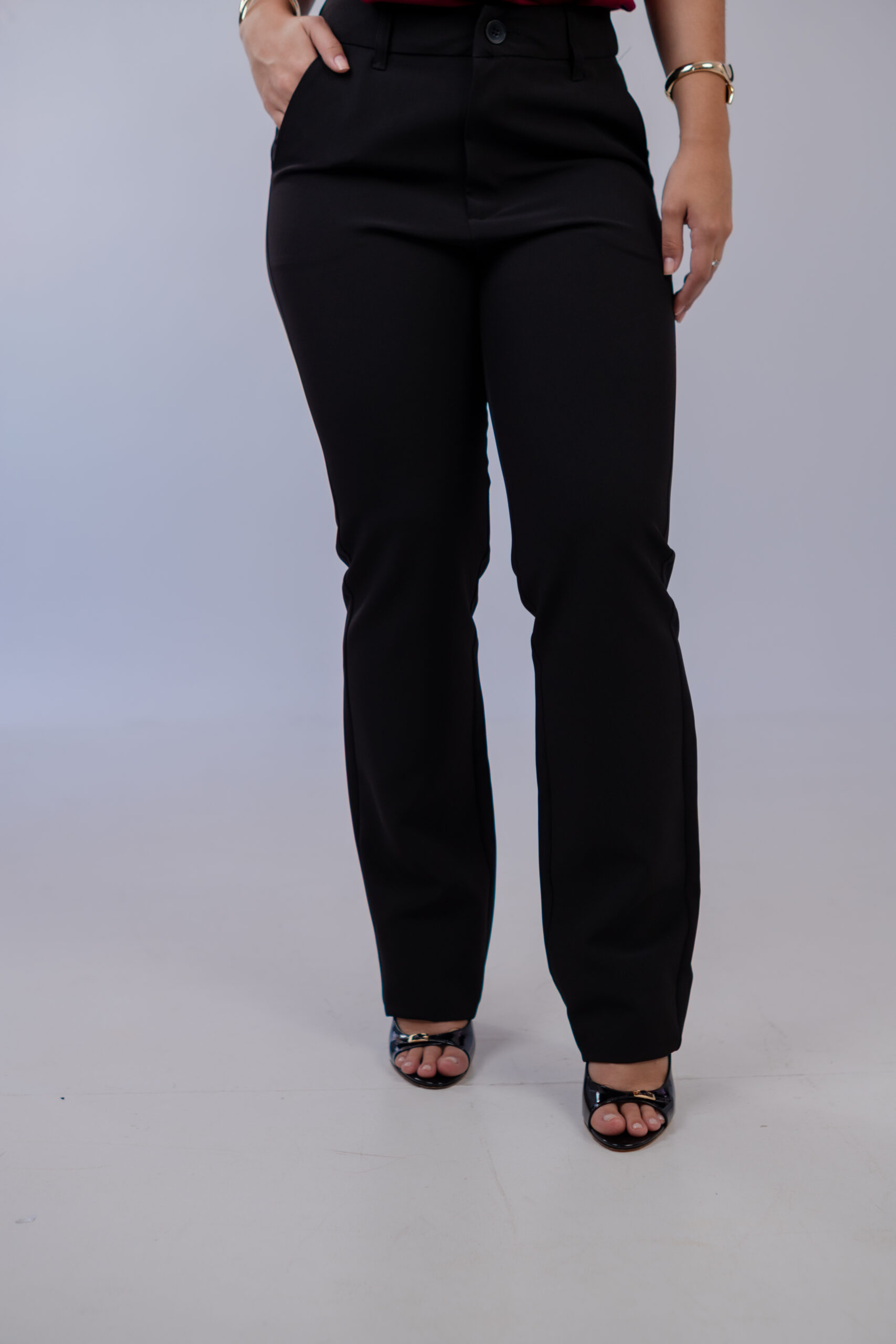 Calça confeccionada em 90% Poliéster e 10% Elastano.
