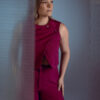 Cropped Mostarda e Framboesa com Abertura na Frente e Abotoamento no Ombro