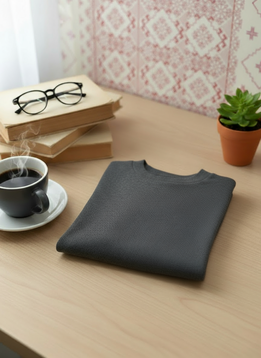 Com sua trama elástica em padrão canelado, oferece conforto e flexibilidade incomparáveis. Feita com algodão de alta qualidade, proporciona uma sensação suave e respirável contra a pele.