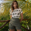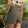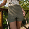 Short assimétrico cintura alta, com fechamento em zipper nas costas.