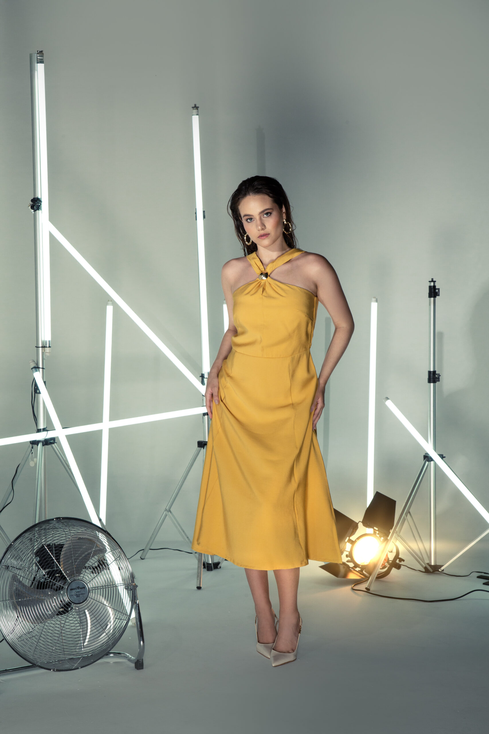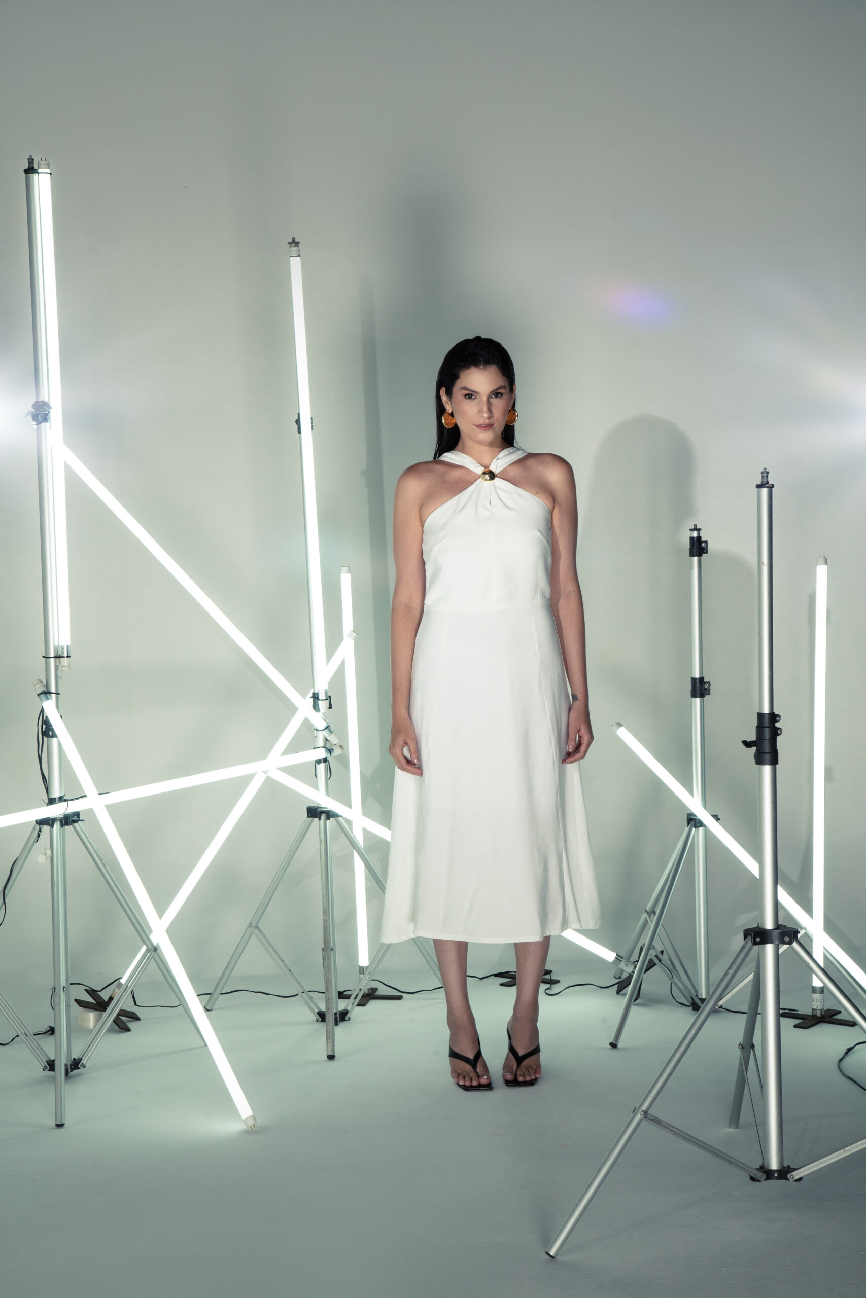 Vestido confeccionado em 90% Viscose e 10% Poliéster.