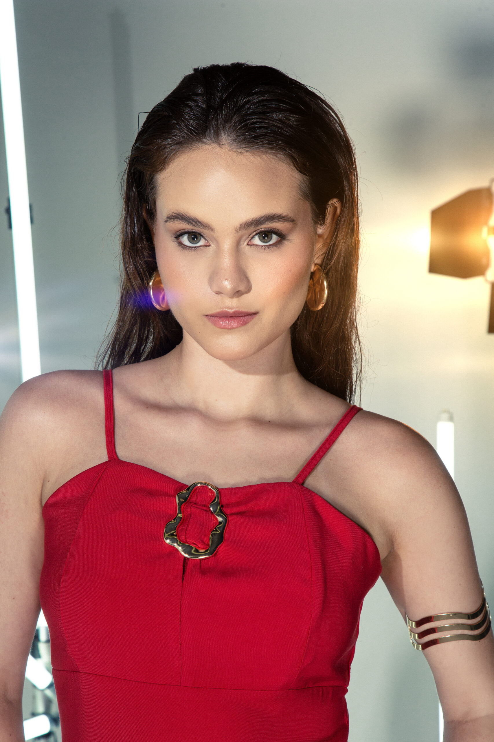 Vestido confeccionado em 90% Viscose e 10% Poliéster.