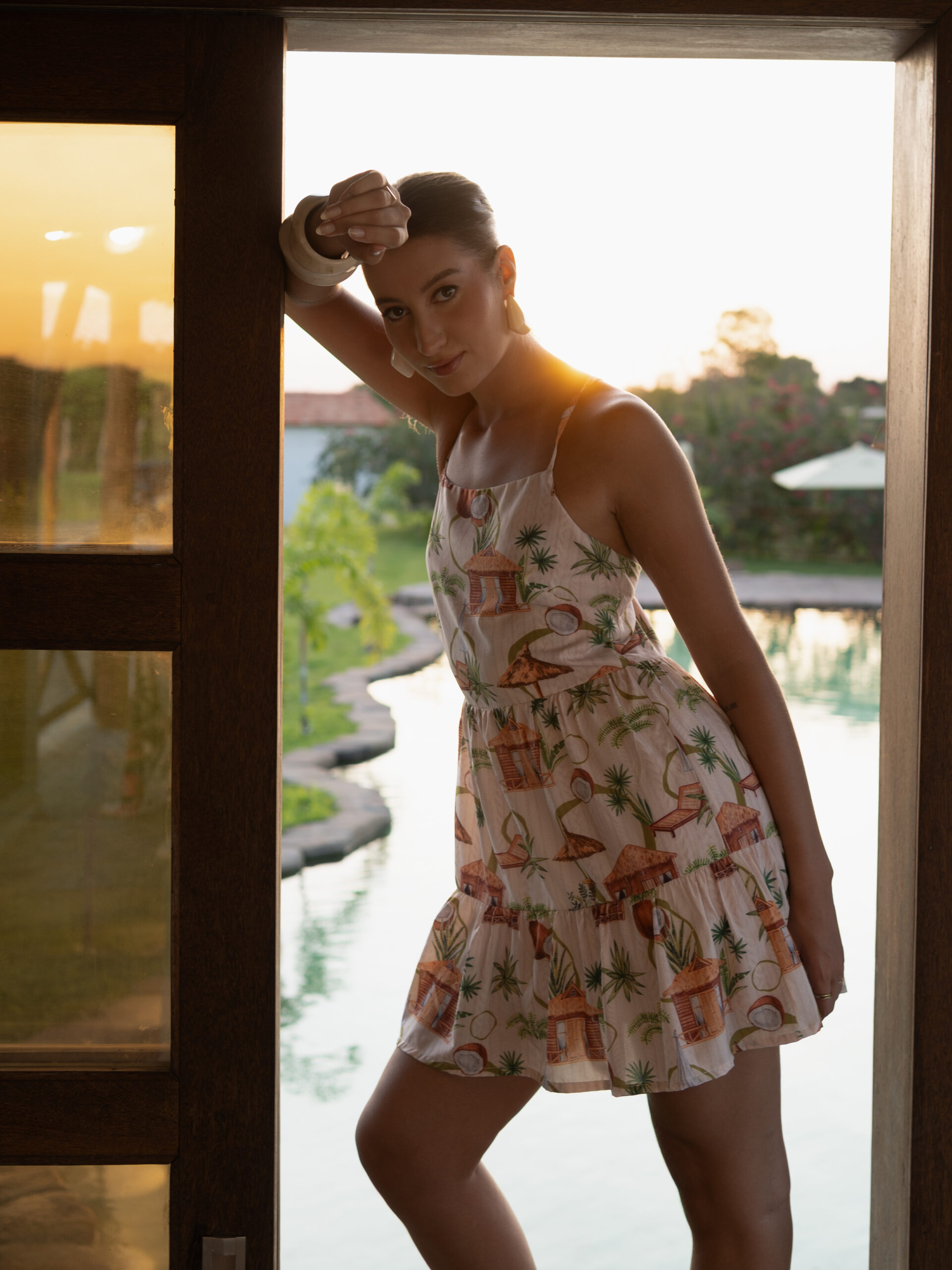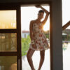 Vestido curto estampado. Traz alças finas ajustáveis e decote reto que evoca leveza. A cintura é marcada por recorte com franzido, oferecendo um ajuste confortável. Confeccionado em tecido leve, possui forro que assegura conforto em qualquer ocasião. ideal para um passeio casual ou um encontro especial.